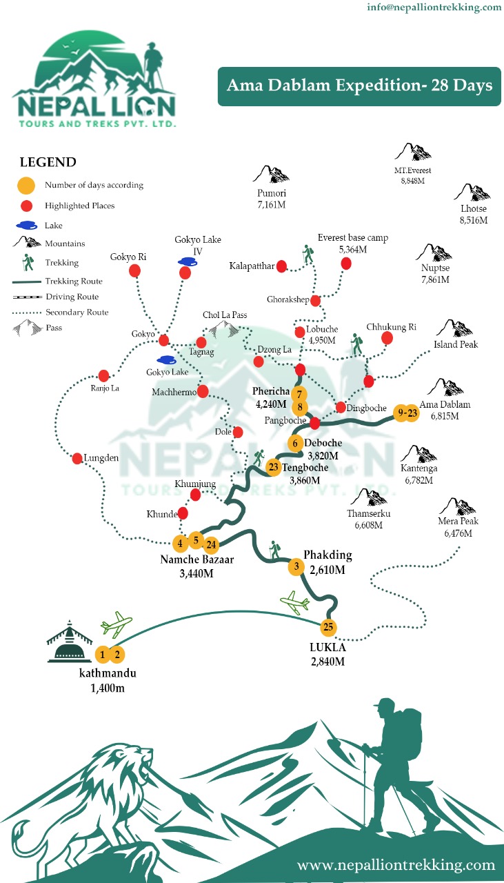 - Expedition Royalty and climbing permit of Nepal Government to climb Mt. Ama Dablam(6812M).